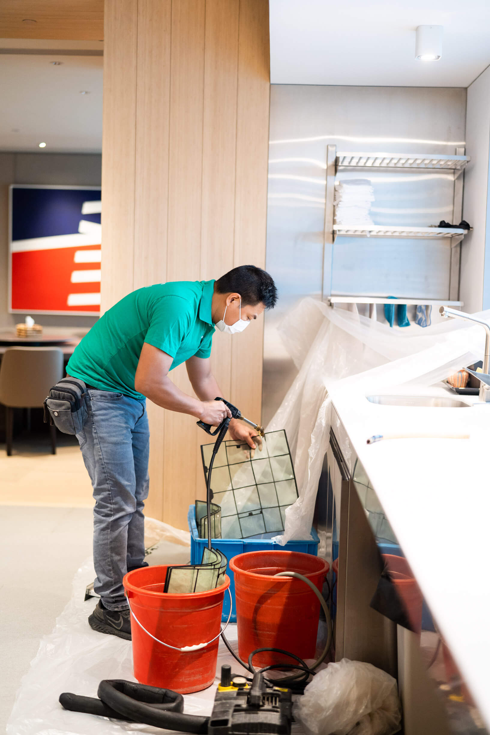 - 清潔劑認證:全部使用「香港環保署認證環保清潔劑」(可降解、無磷、無香精),廚房用「食品級除油凝膠」(誤接觸食材無害),浴室用「生物酶除霉劑」(分解霉斑而非掩蓋,無化學殘留);