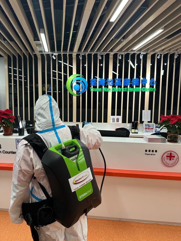 MasterClean這次受委託來到荃灣區的康健中心進行BIT SteraMist 6-Log Kill消毒滅菌服務,MasterClean是香港唯一一所提供6-Log Kill消毒滅菌服務的環衛企業。6-Log Kill消毒滅菌服務比市面上任何一種消毒服務更有效,獲得美國EPA和FDA認證。更能在5秒內殺滅99.9999%細菌病毒,驗證有效對抗新冠肺炎病毒、猴痘病毒及類鼻疽病毒,提供最全面的消毒滅菌效能。我們會使用美國EPA和FDA認證的冷涷離子噴槍,將BIT SteraMist經噴霧形式均勻的噴灑在整個康健中心,為每位前往的市民及中心員工的健康提供有效的保障。